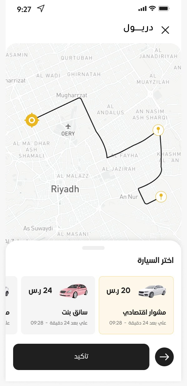 سيطابقك دريول مع أقرب سائق متاح